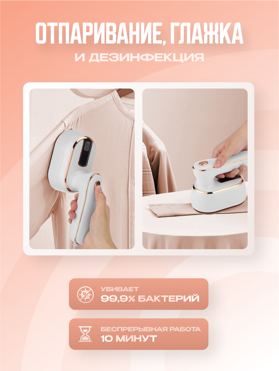 Отпариватель 2 в 1 для одежды ручной , мини, вертикальный, паровой, парогенератор для глажки, мощный, утюжок