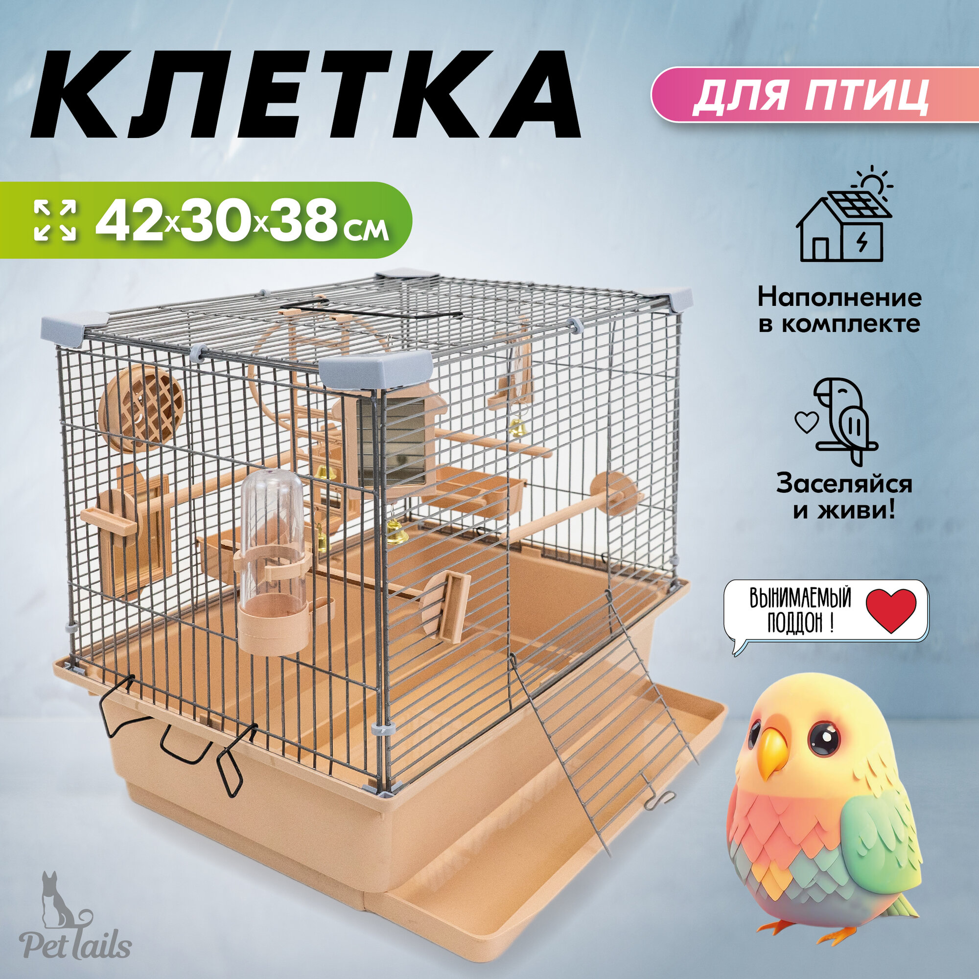 Отзывы на Клетка для птиц разборная "PetTails", шаг прута до 11мм, 42*30*h38см, бежевая