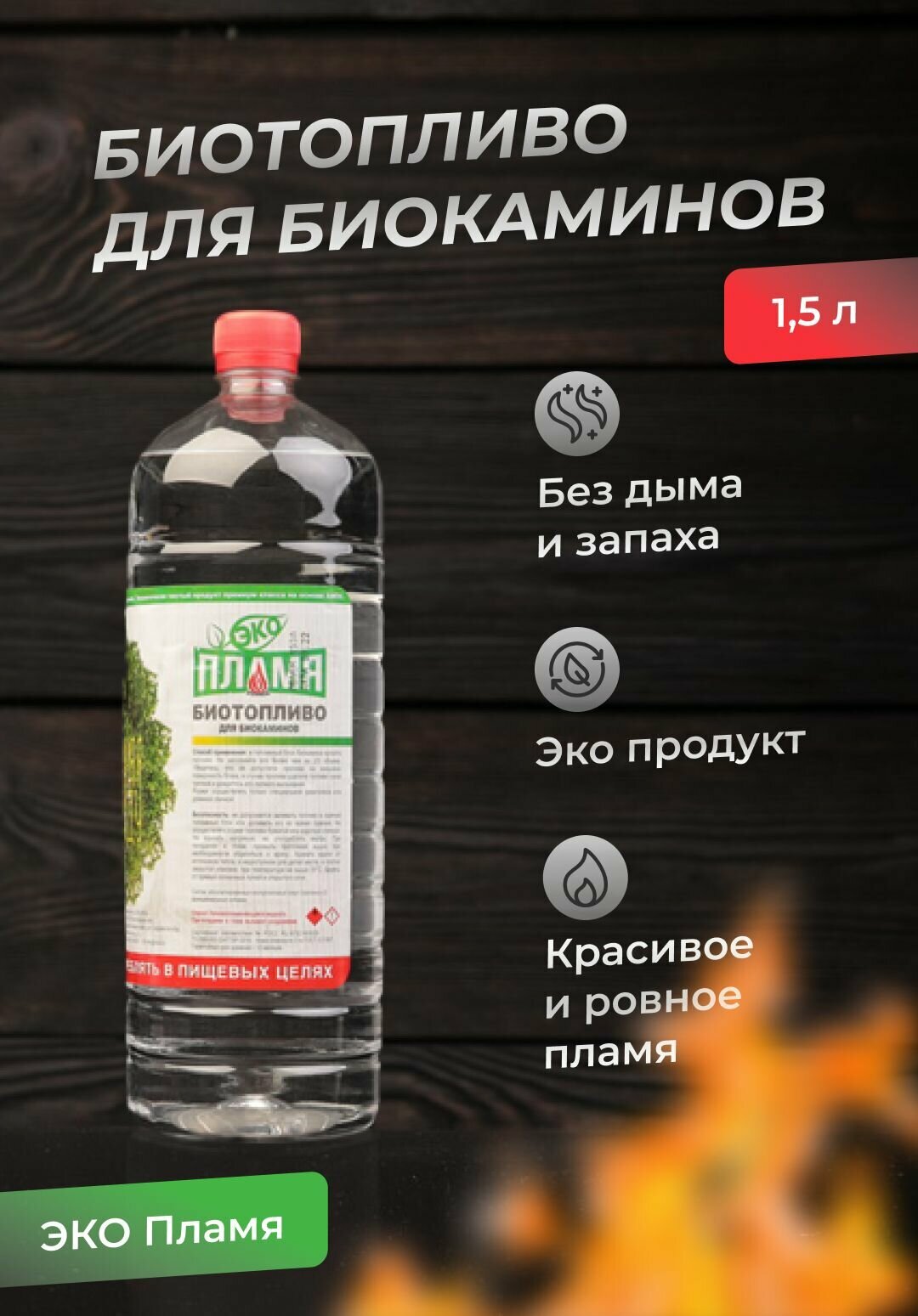 1.5 литра / Биотопливо для камина / ЭКО Пламя / Двойной очистки / Без запаха