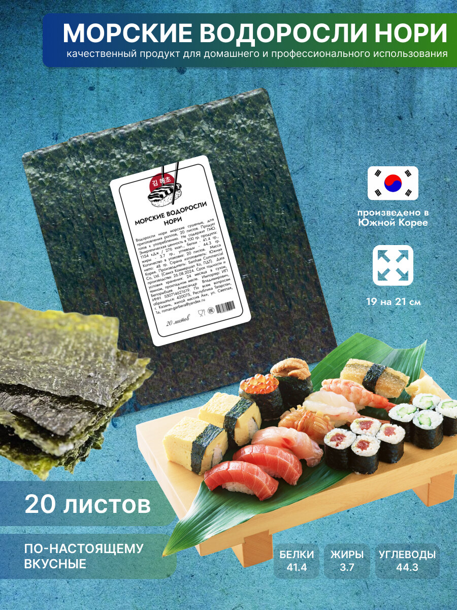 Сушеные морские водоросли нори, 20 листов для суши и роллов информация: