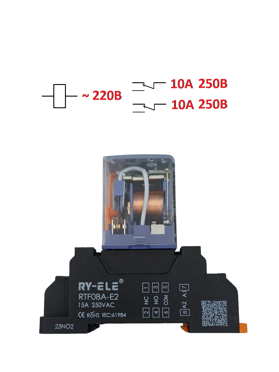 Промежуточное реле с колодкой 220 В, 2-х контактное 10А информация:
