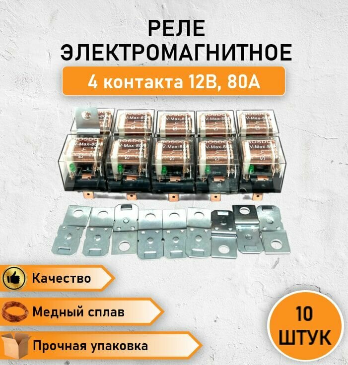 Отзывы на 10 шт. Реле электромагнитное замыкающее со светодиодом и кронштейном 4 контакта 12В, 80А