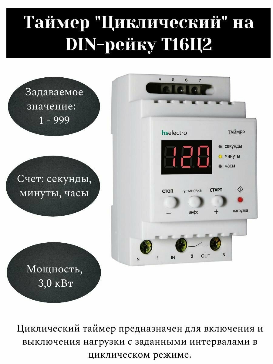 Таймер "Циклический" на DIN-рейку Т16Ц2 информация: