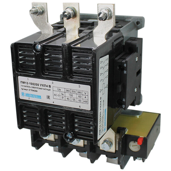 10 цен на Электромагнитный пускатель Электротехник ПМ12-100200 УХЛ4 В, 380В/50Гц, 2з и2р, 100А, нереверсивный, с реле РТТ-325 85- 115А, IP00, ET504289