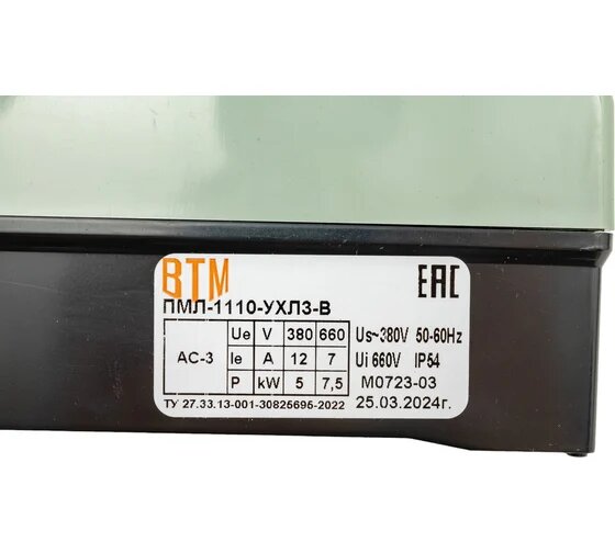ВТМ (S) Пускатель ПМЛ-1110-12А-380АС-(1з)-УХЛ3-В ВТМ00052230 информация: