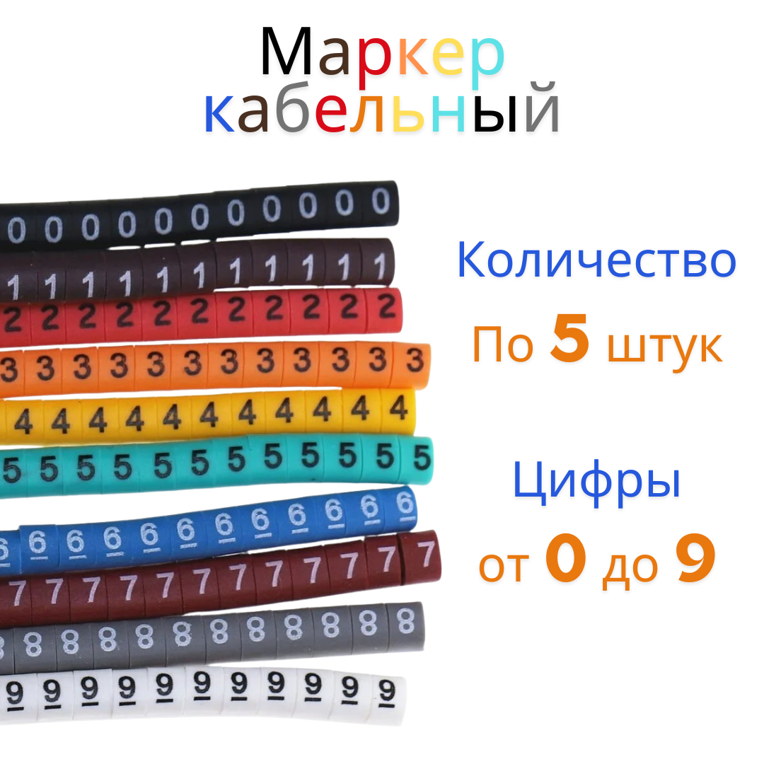 Отзывы на Маркер кабельный / колечко-бирка на провод маркировочный от 0 до 9 по 5 штук каждого (50 штук в комплекте) (Н)