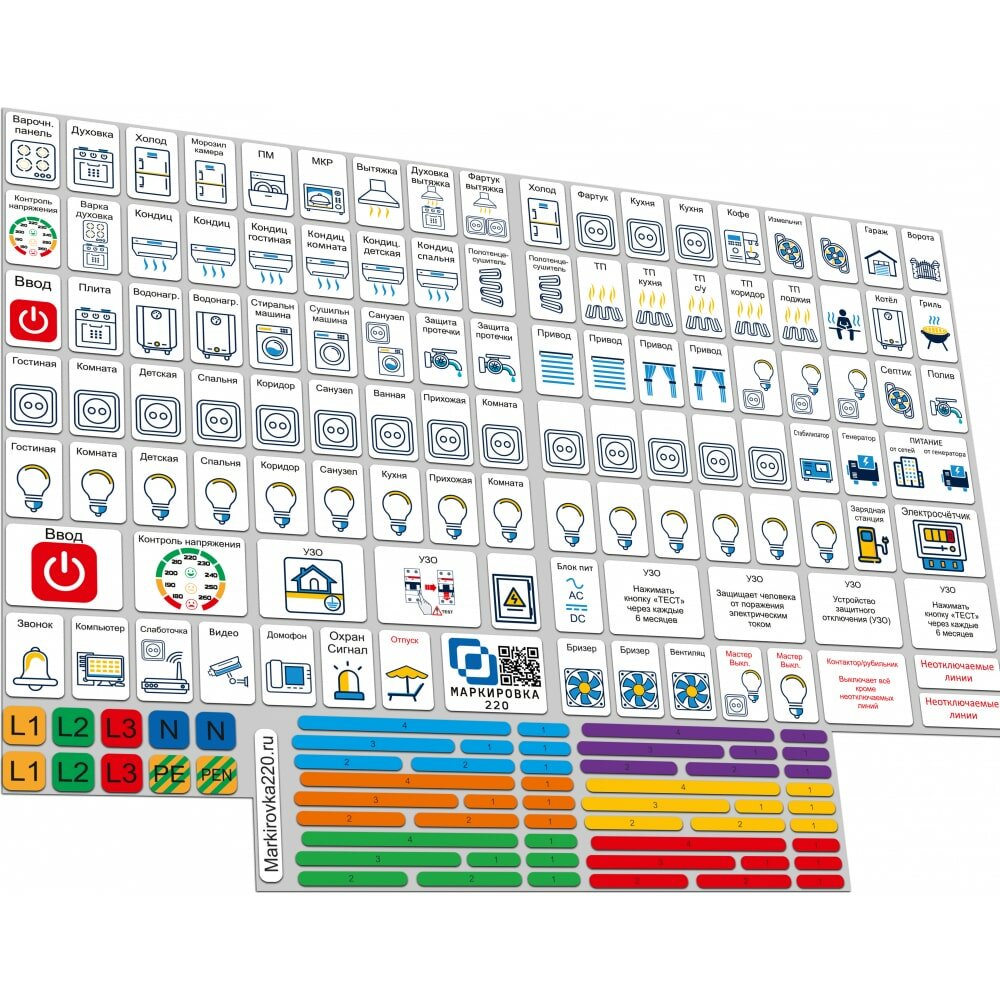 Набор наклеек на электрощит для электрических щитов до 96 модулей Маркировка 220 EL-ProMax информация:
