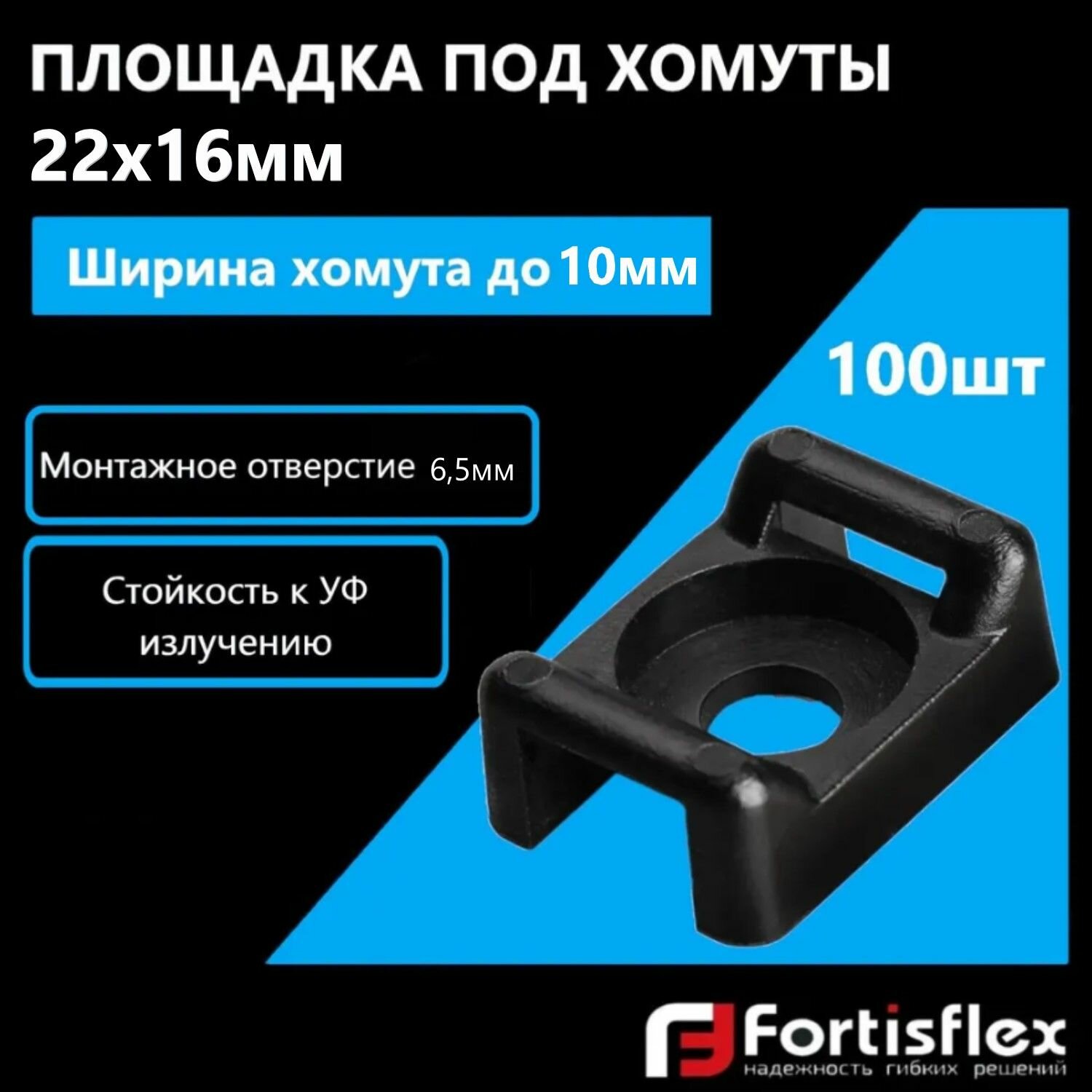 Площадка под хомуты, монтажная под винт Fortisflex ПМО 22х16 мм, черная, 100 шт информация: