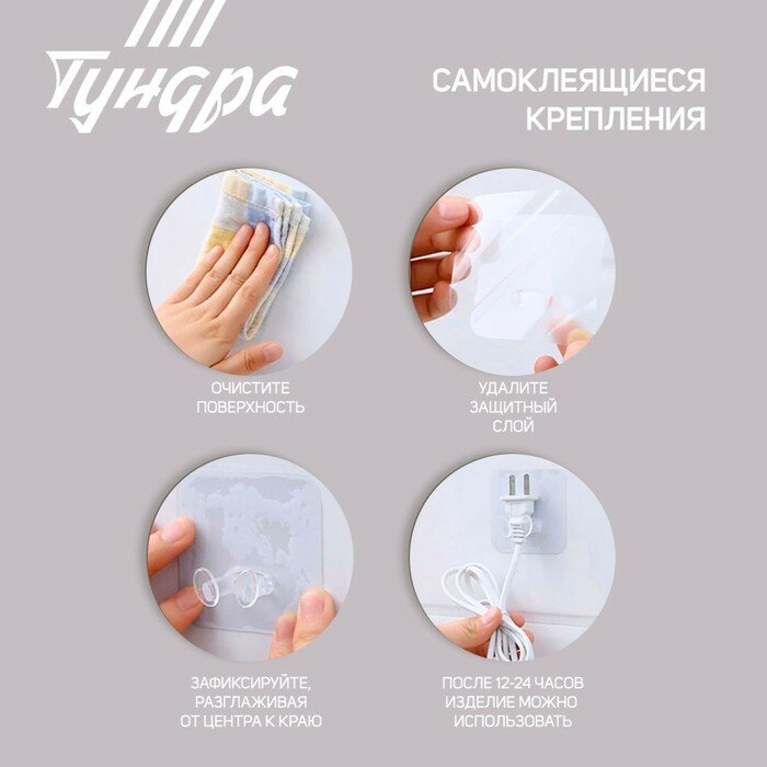 Держатель с клейкой поверхностью тундра, 60х60 мм, для вилки, прозрачный информация: