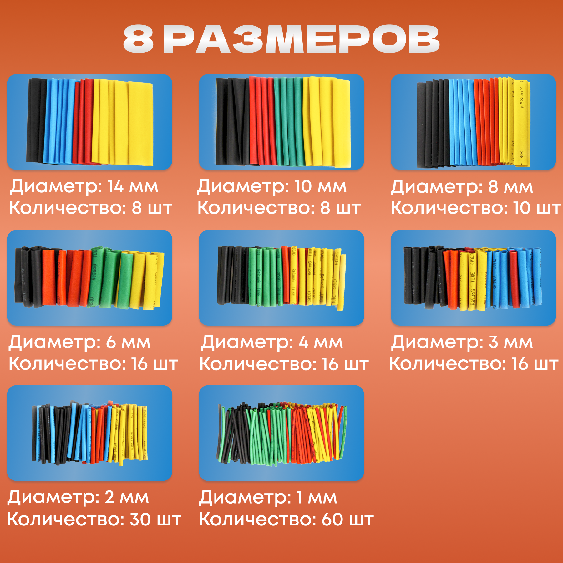 Набор термоусадочных трубок 164 шт (термоусадка)/ 8 размеров/ разные цвета/ кембрики рыболовные информация: