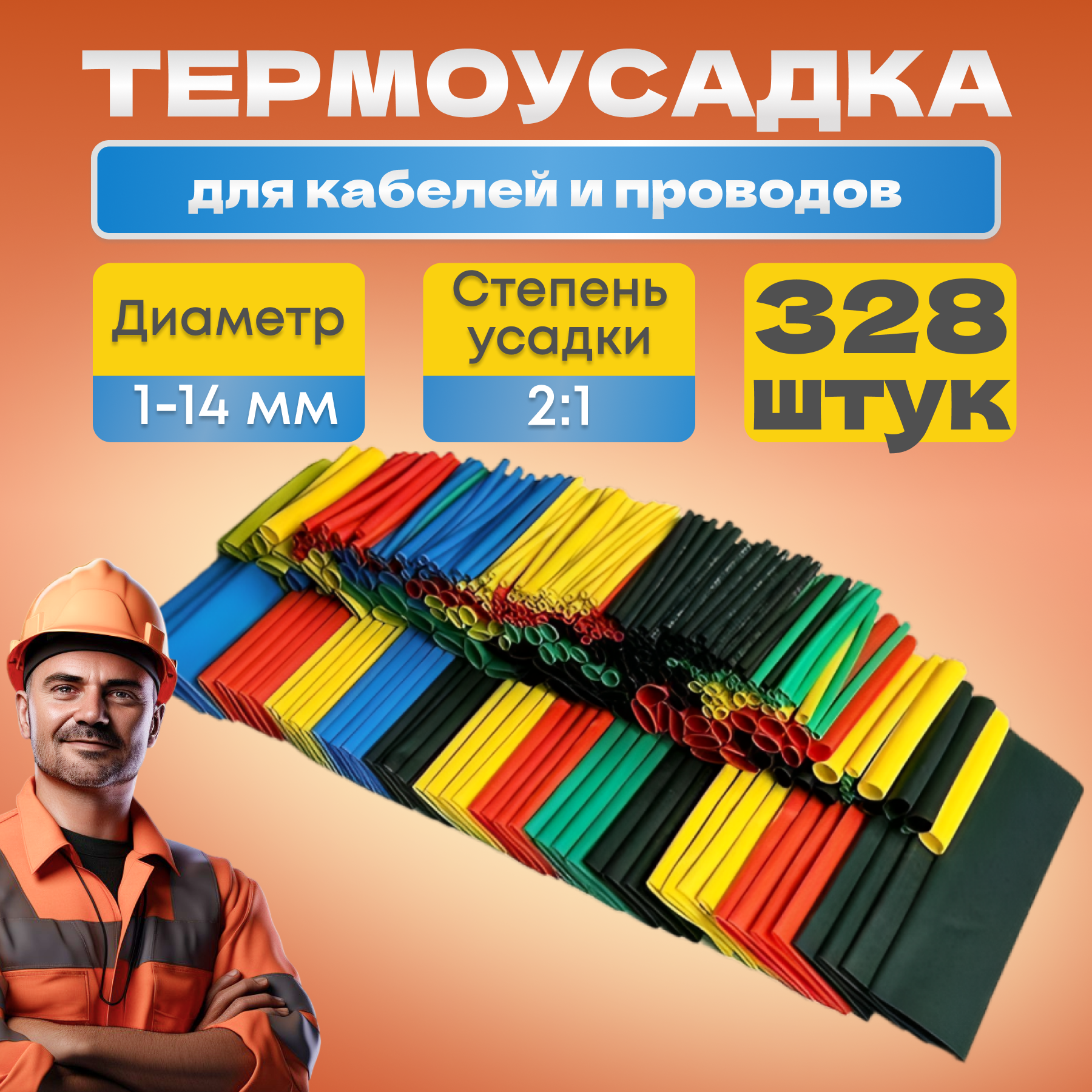 10 цен на Набор ТУТ термоусадочных трубок 328 шт / термоусадка / кембрики рыболовные/ термоизоляция для проводов, 2:1 (У)