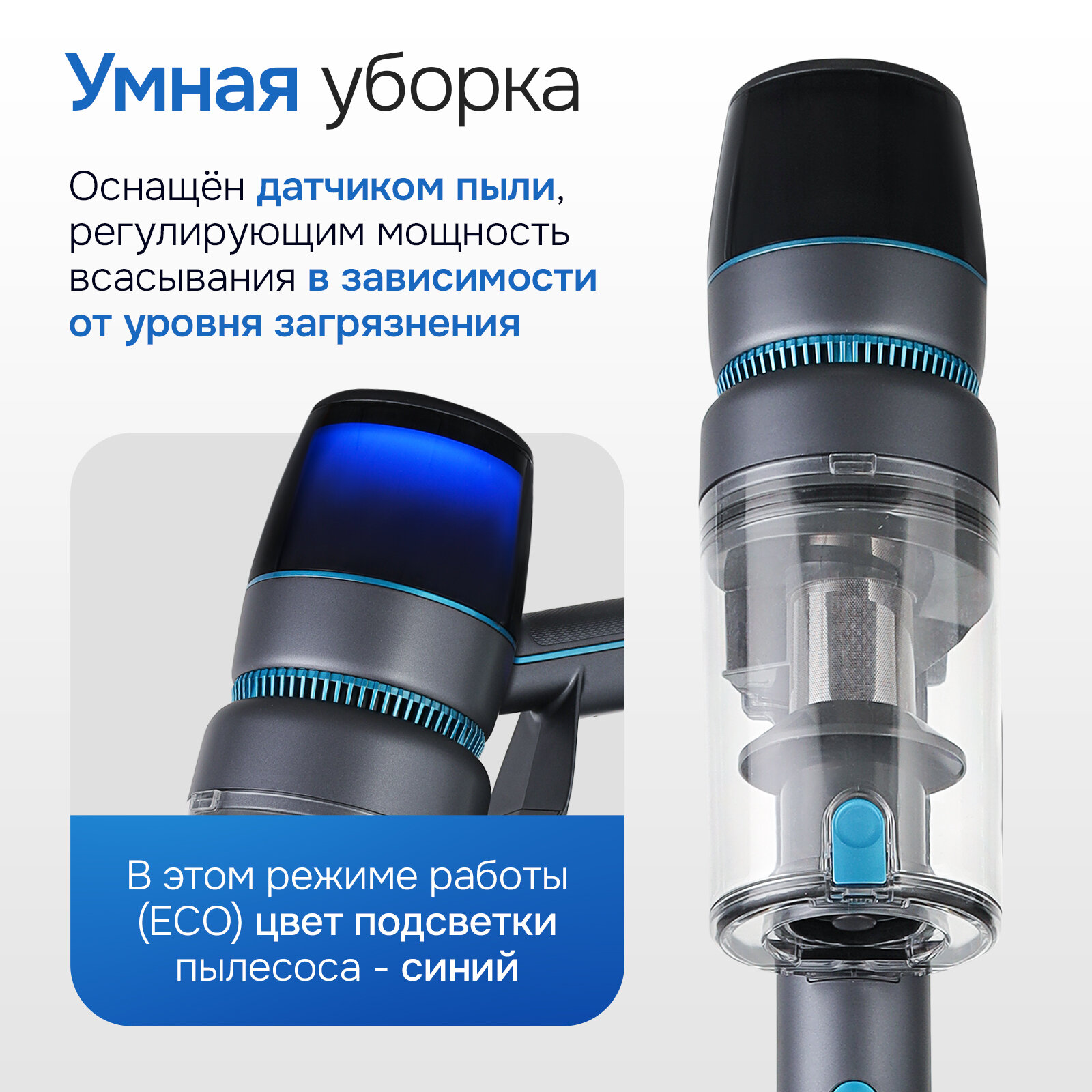 | Особенности конструкции | BLDC-мотор / вертикальная парковка / датчик распознавания загрязненности / место для хранения насадок / регулятор мощности на корпусе / управление мощностью на рукоятке |
