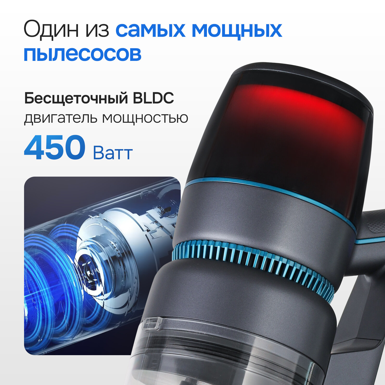 Вертикальный пылесос WONKI VC-100 с бесщеточным двигателем мощностью 450W информация: