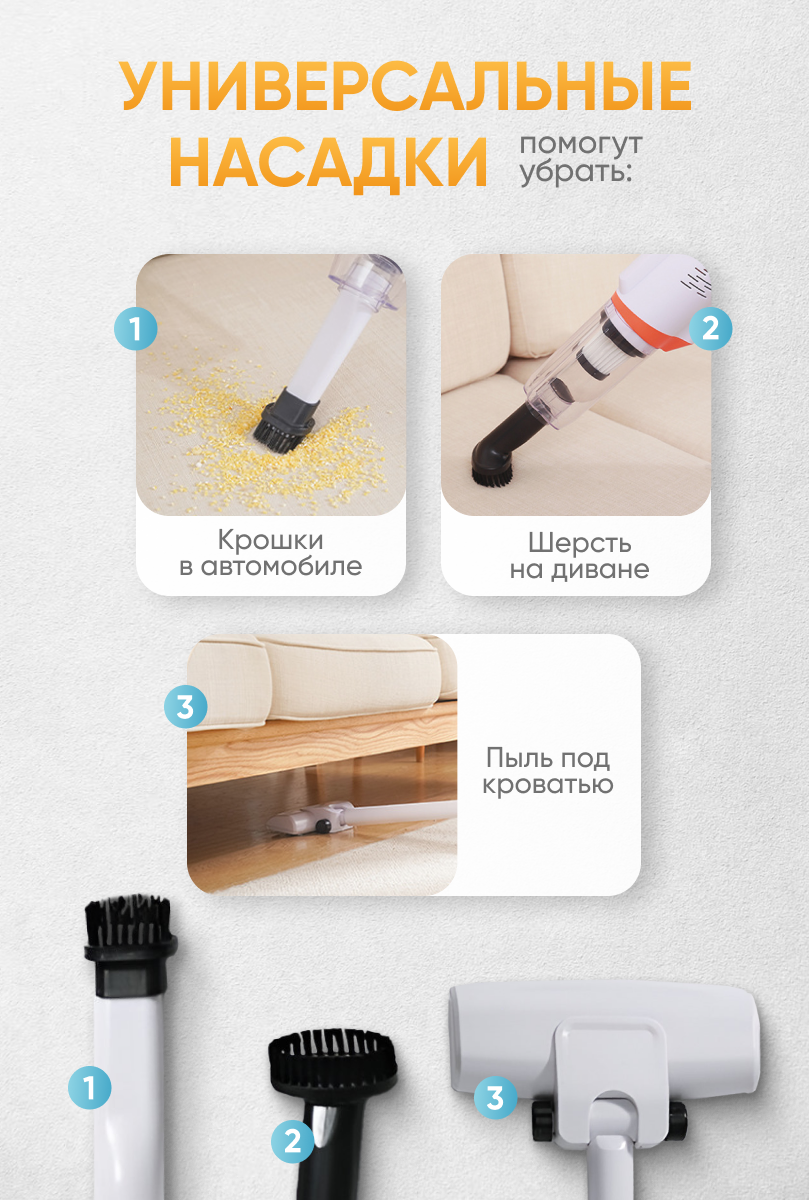 Пылесос NAVISA вертикальный беспроводной мощный для дома и автомобиля, белый информация: