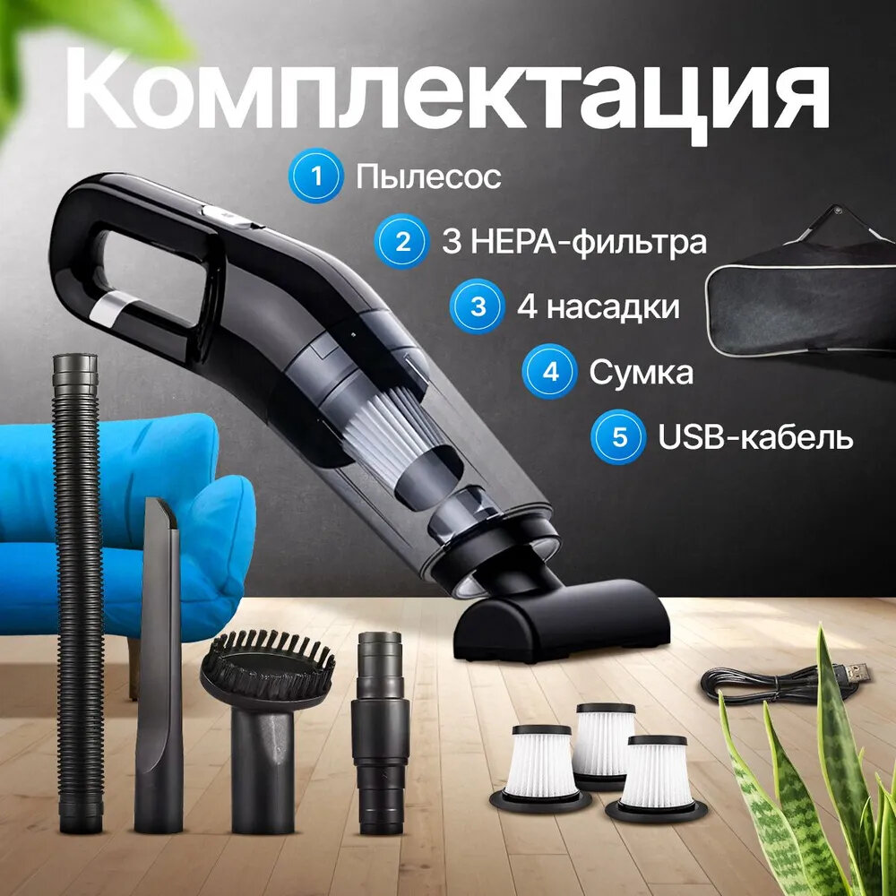10 цен на Пылесос аккумуляторный для автомобиля, Черный, 120W, 4000mAh