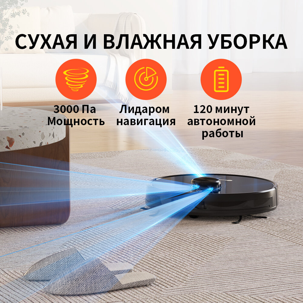 Робот пылесос для дома Neatsvor X600Y с LIDAR,3000 Па, сохранение визуальных карт, сухая/влажная уборка, черный(Русская версия)