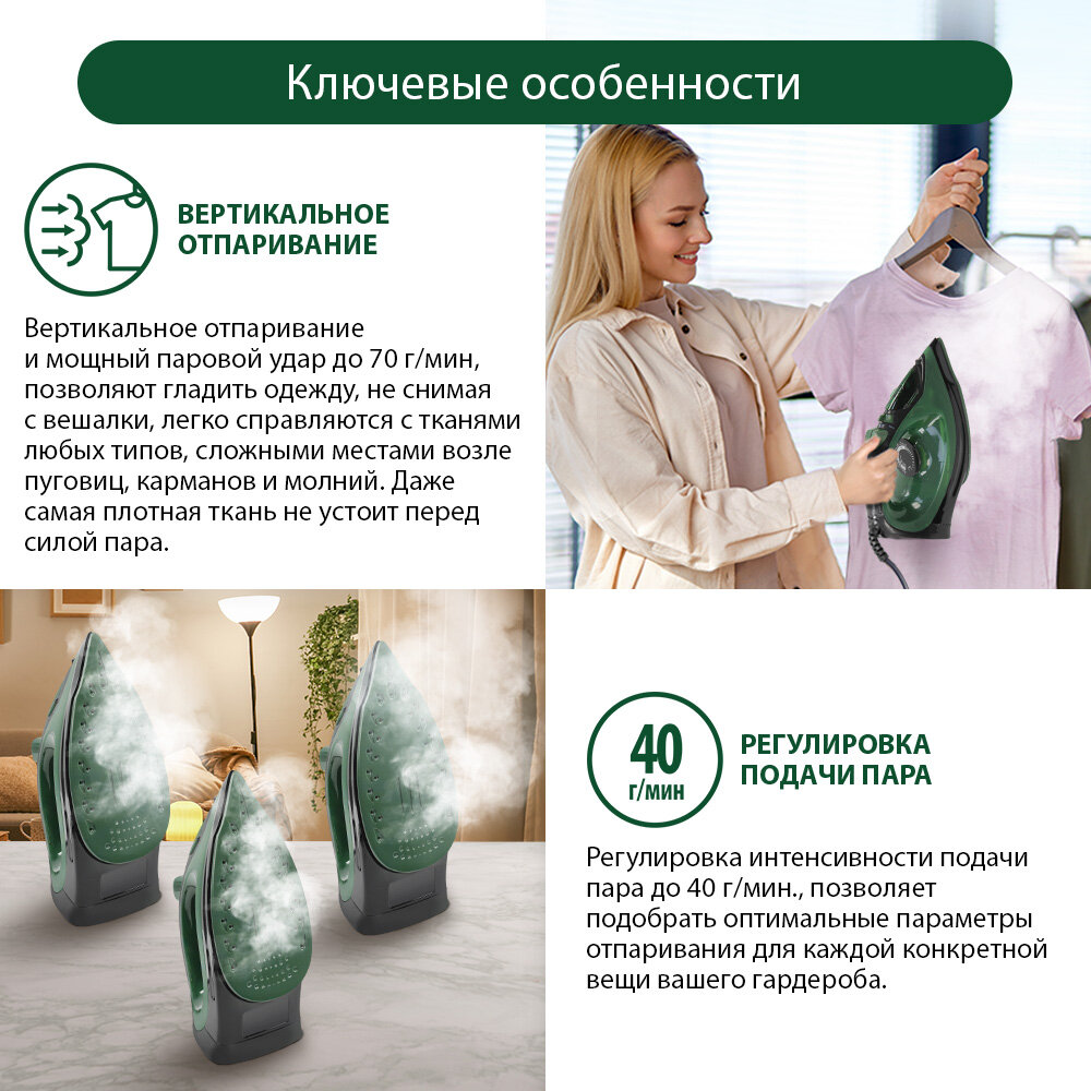| Дополнительные функции | система самоочистки / сухая глажка / функция разбрызгивания |
