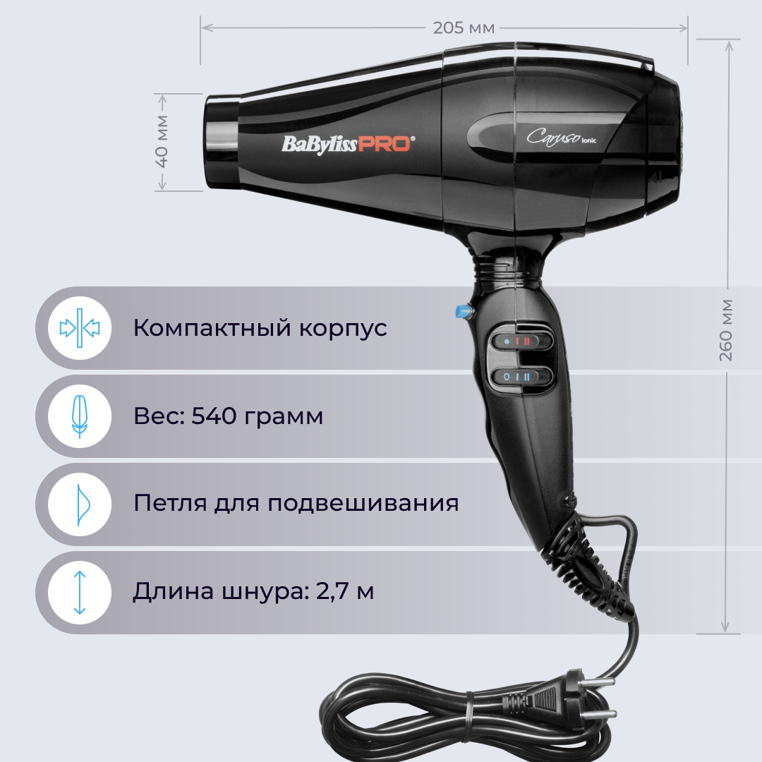 Профессиональный фен BaByliss Pro Caruso + диффузор BABD11E информация:
