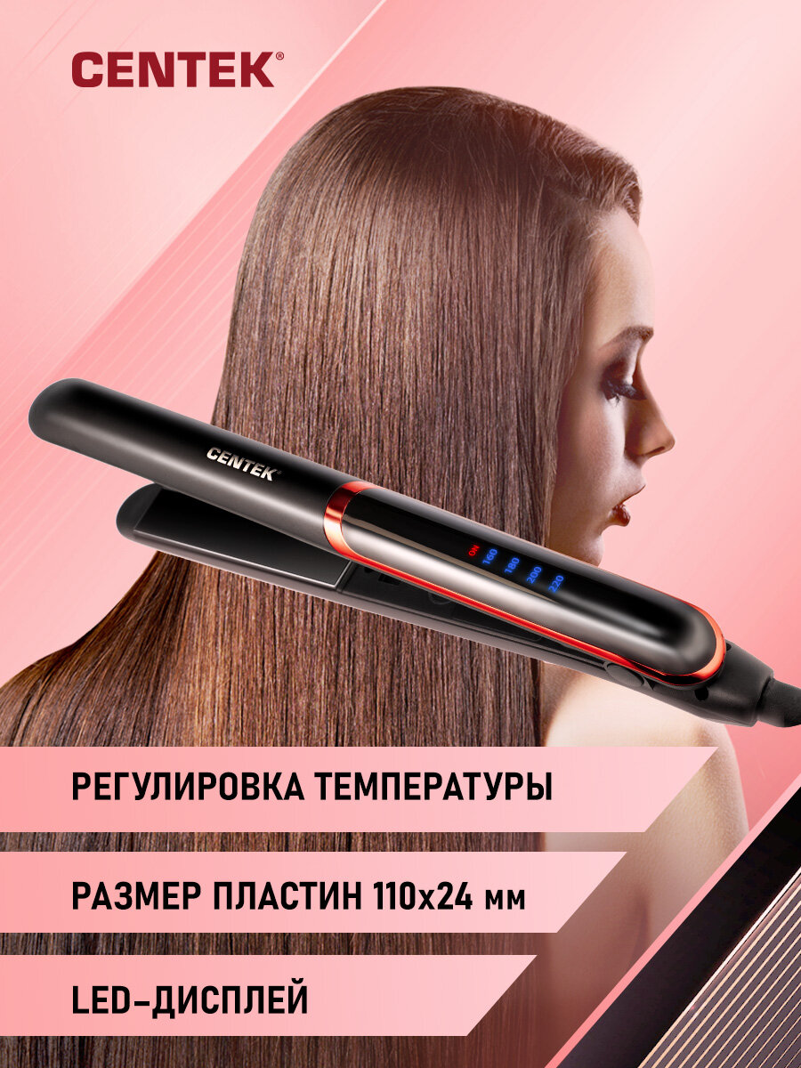 10 цен на Выпрямитель для волос CENTEK CT-2024/ 35 Вт/ 4 режима/ LED дисплей/ керамические пластины 110х24мм