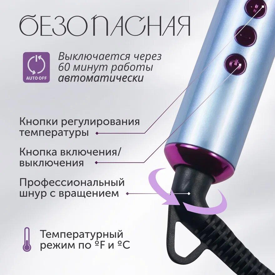 | Дополнительная информация | Вращение шнура 360° Защита от перегрева Защита шнура от перекручивания Компактный размер Петля для подвешивания Подставка для щипцов Термодатчик Регулировка температуры |