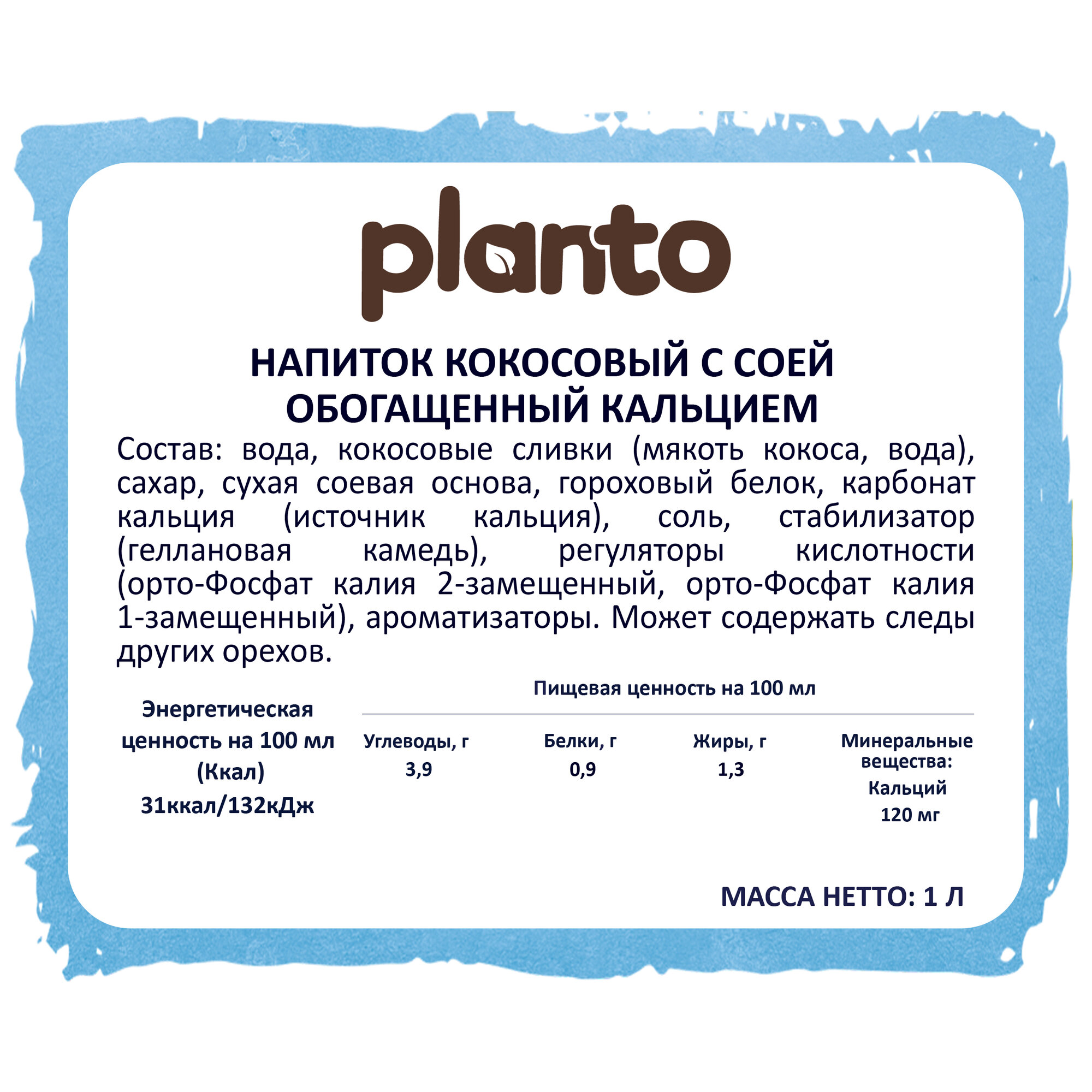 Растительный напиток Planto Barista кокосовый с соей 1,3% 1л информация:
