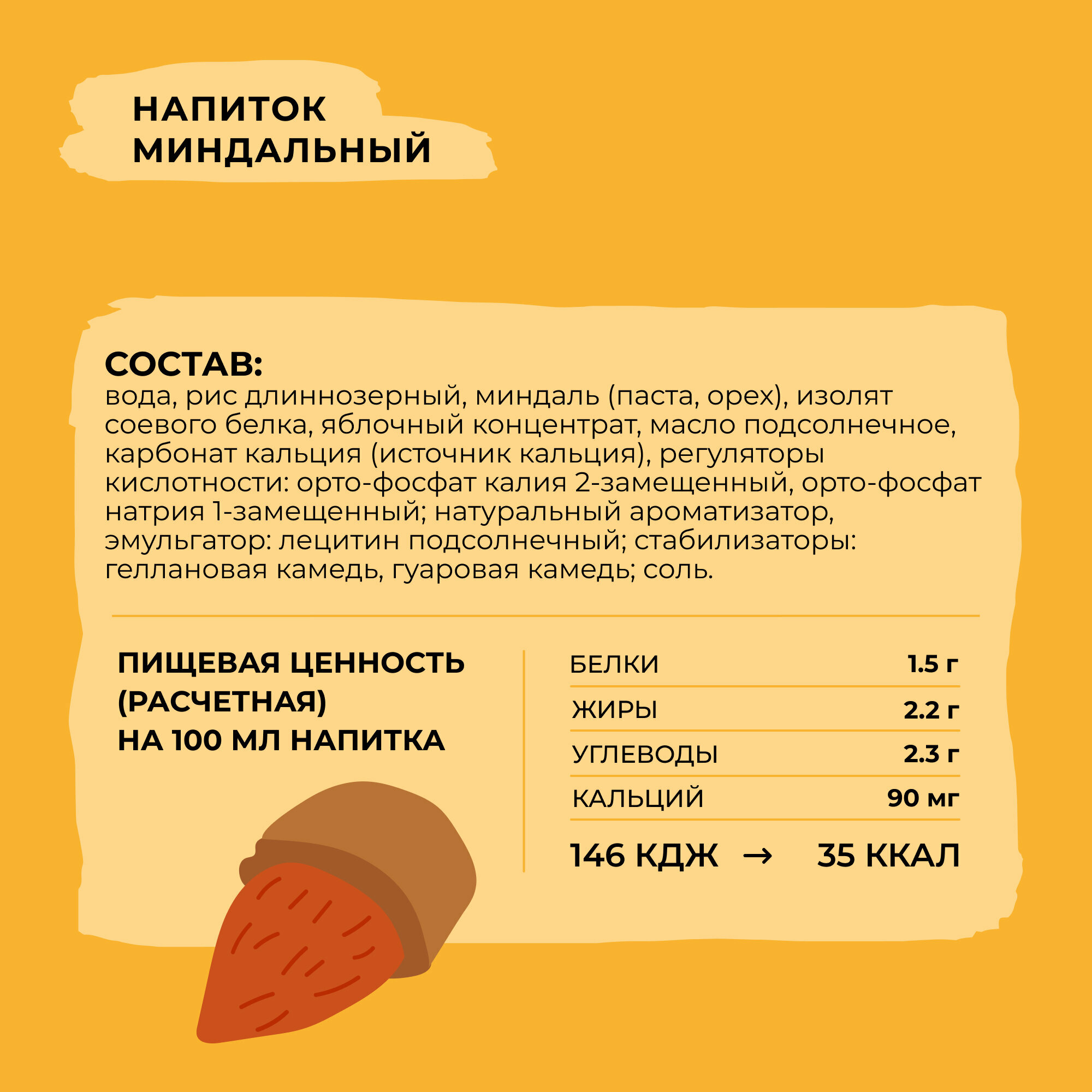 | Состав | Вода, фундук (паста, орех), рис длиннозерный, карбонат кальция (источник кальция), натуральный ароматизатор, соль морская, стабилизатор: гуаровая камедь. |