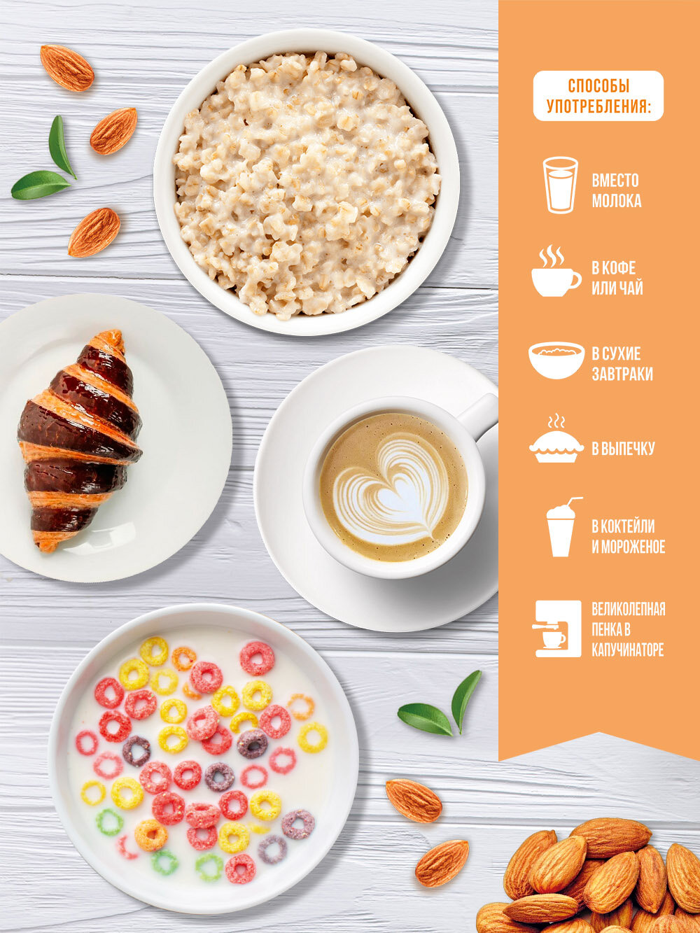 Zinus Vegan "Миндальное" 1,8%, 1л, ТВА/коробка 4шт/. Продукт на растительном сырье информация: