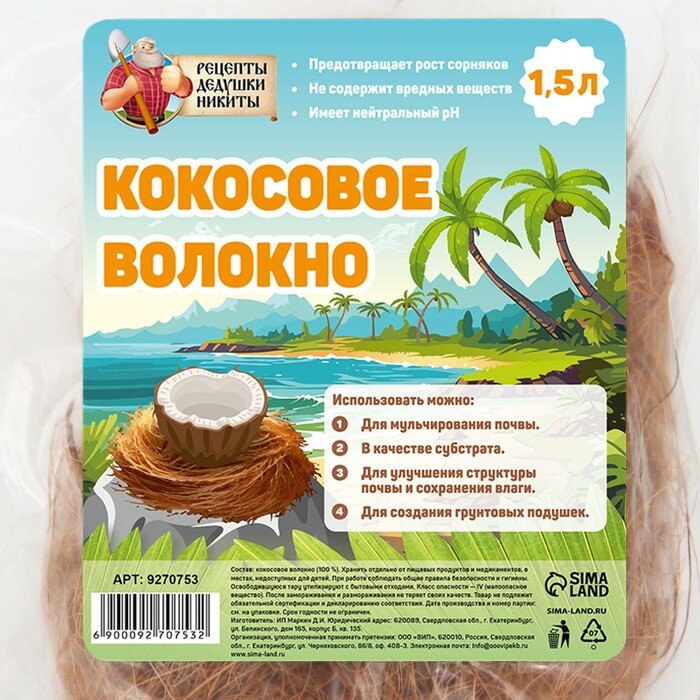 Кокосовое волокно "Рецепты Дедушки Никиты", 1.5 л информация: