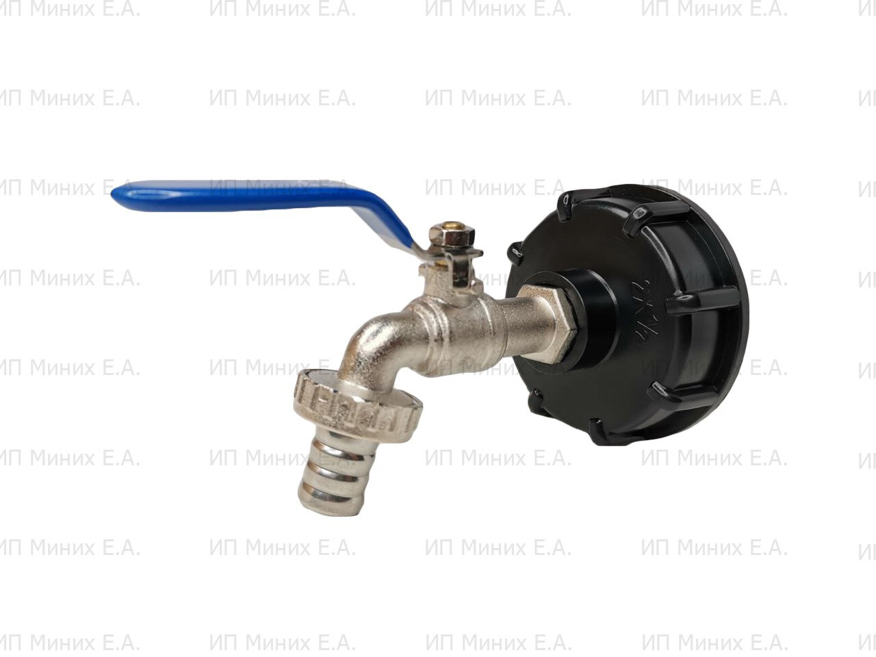 Кран на Еврокуб 1" / Переходник для Еврокуба / Вход 60мм крупная резьба, шаг 6мм, выход штуцер 25мм 1 199 ₽