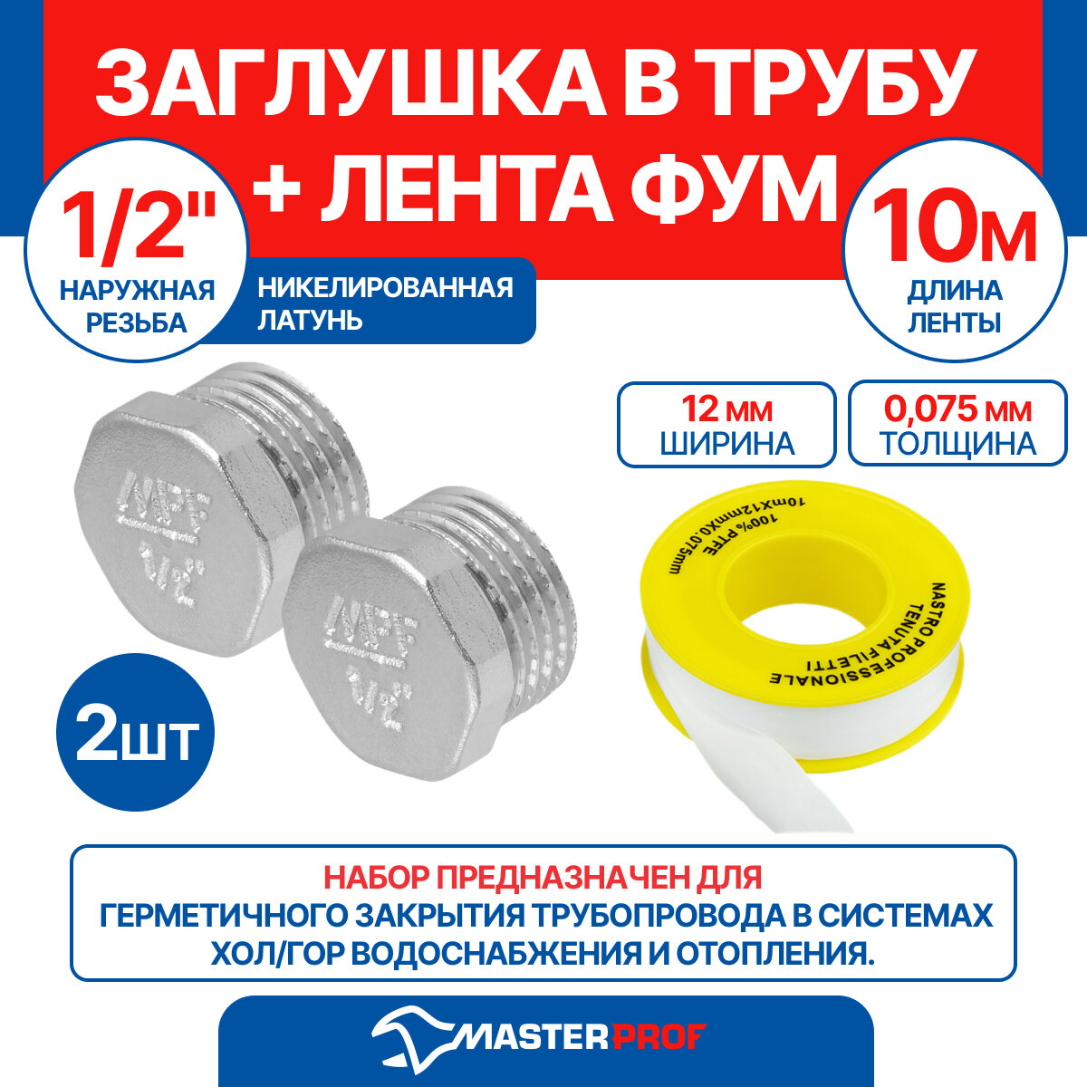 10 цен на Заглушка в трубу (пробка) 1/2" н MPF, 2 шт + лента ФУМ 10 м