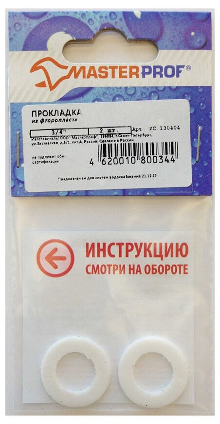Прокладка для воды уплотнительная MasterProf, фторопласт, 3/4", 2 штуки информация: