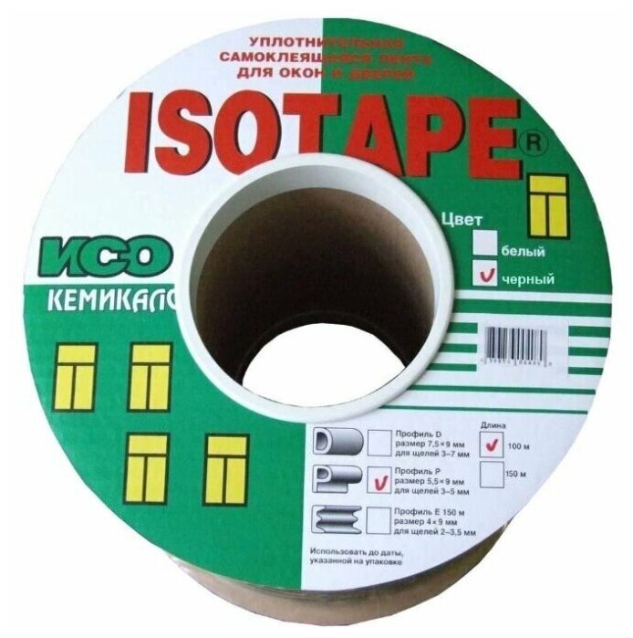 Уплотнитель для окон и дверей ISOTAPE, профиль-P, черный, 100 м информация: