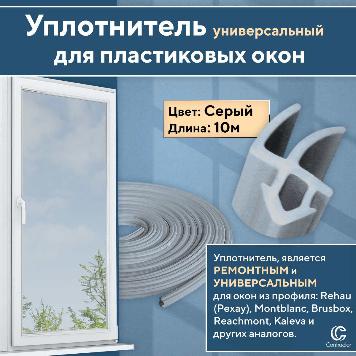 Отзывы на Уплотнитель для окон и дверей из профиля Рехау и аналогов, серый 10 метров