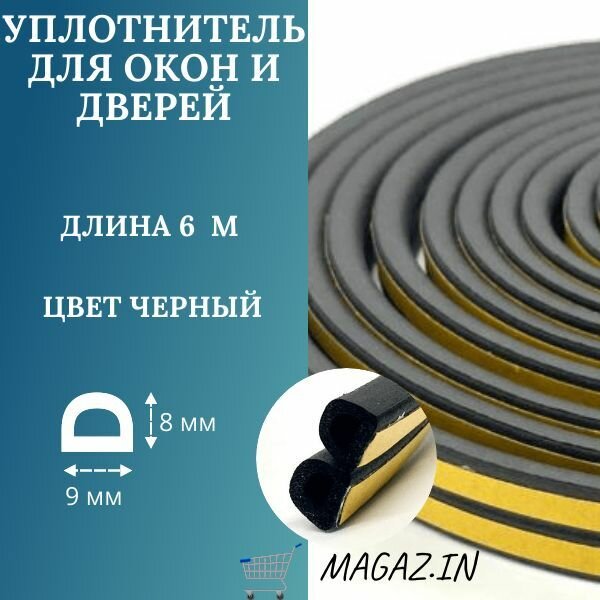 10 цен на Уплотнитель самоклеющийся для окон и дверей резиновый, черный D-профиль, 8*9 мм, 6м