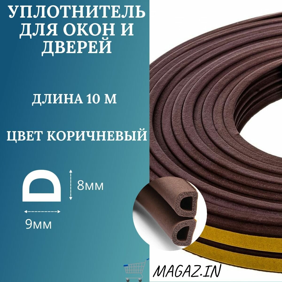 10 цен на Уплотнитель самоклеющийся для окон и дверей резиновый, коричневый D-профиль, 8*9 мм, 10м