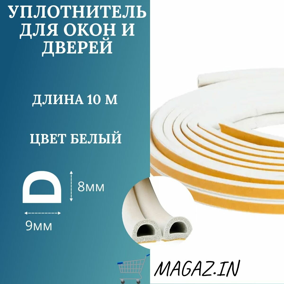 Уплотнитель самоклеющийся для окон и дверей резиновый, ,белый D-профиль, 8*9 мм, 10м информация: