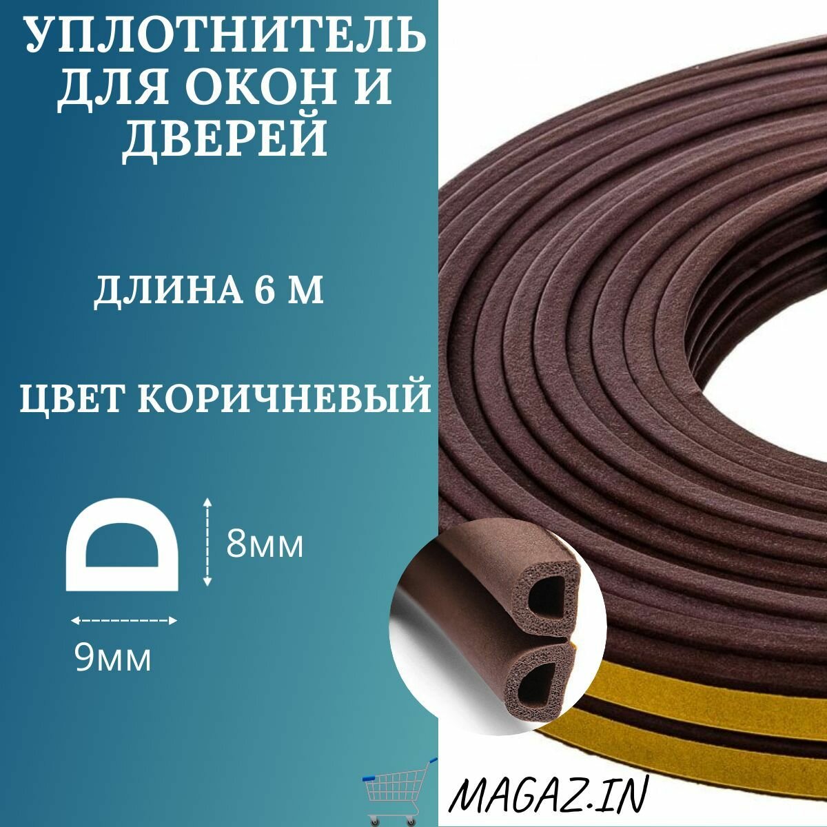 10 цен на Уплотнитель самоклеющийся для окон и дверей резиновый, коричневый D-профиль, 8*9 мм, 6м