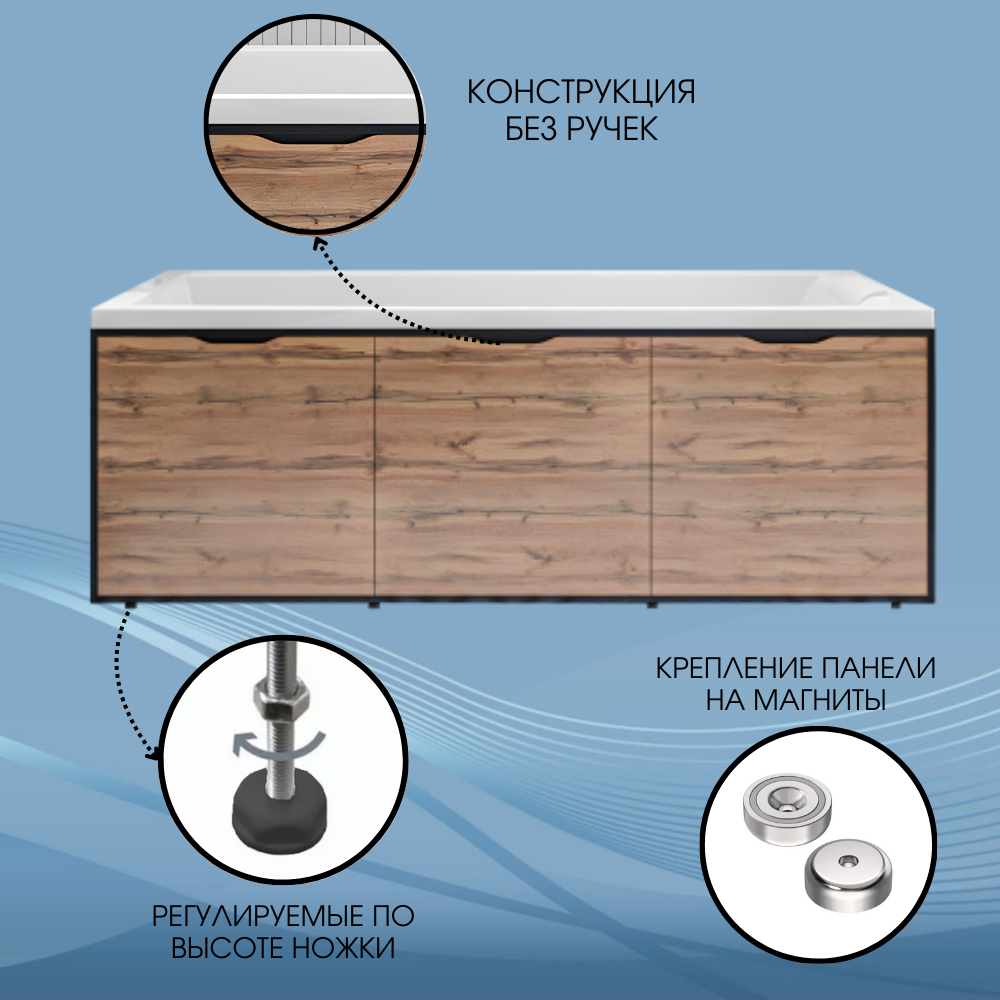 Экран для ванны 1Marka Grunge Loft цвет Дуб Вотан 170 см со съемными панелями и металлическим каркасом информация: