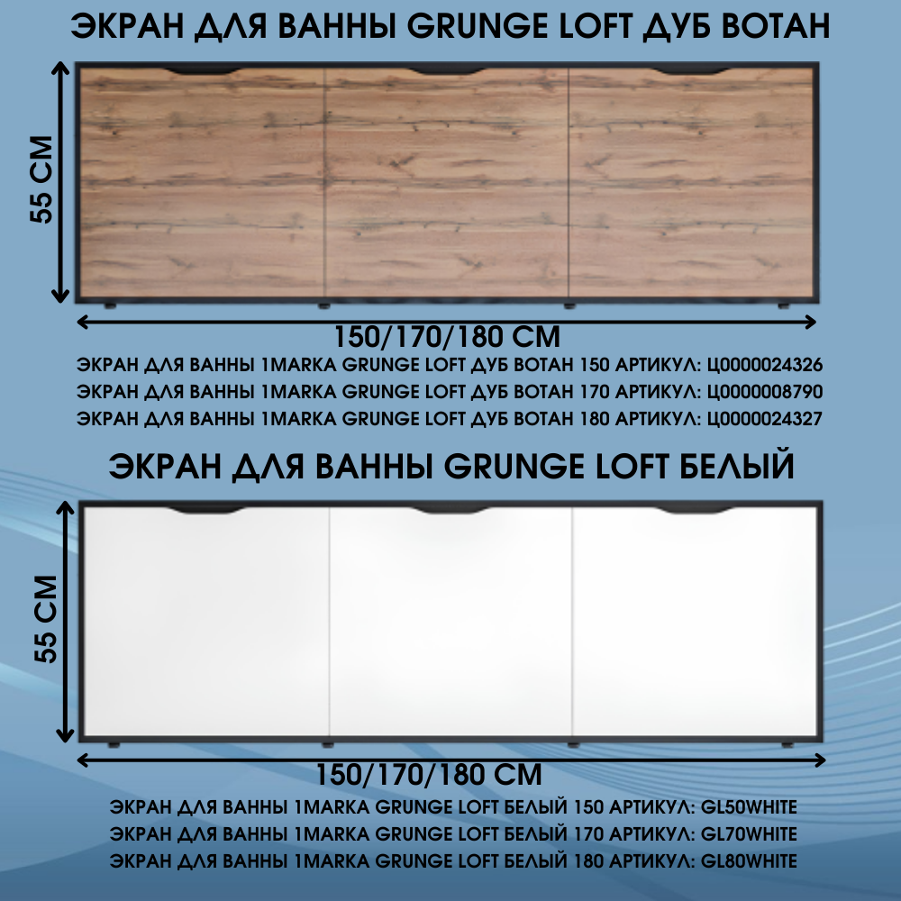 Мы выбрали 10 лучших цен на Экран под ванну универсальный Grunge Loft Дуб вотан 180 см. Перед тем как купить Экран под ванну универсальный Grunge Loft Дуб вотан 180 см посмотрите найденные предложения из Яндекс Маркета и других сайтов на основе XML фидов.