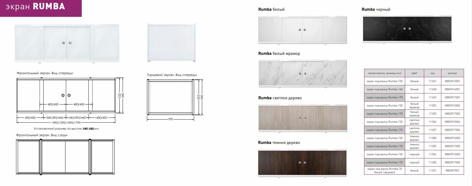 экран под ванну Rumba 180 белый MELODIA MBSR18001 7 550 ₽