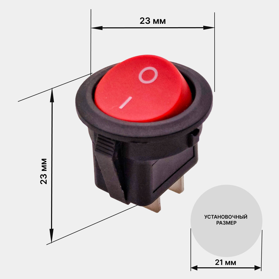 Выключатель клавишный круглый 250V 6А (2с) ON-OFF красный (комплект с клеммами и термоусадкой) информация: