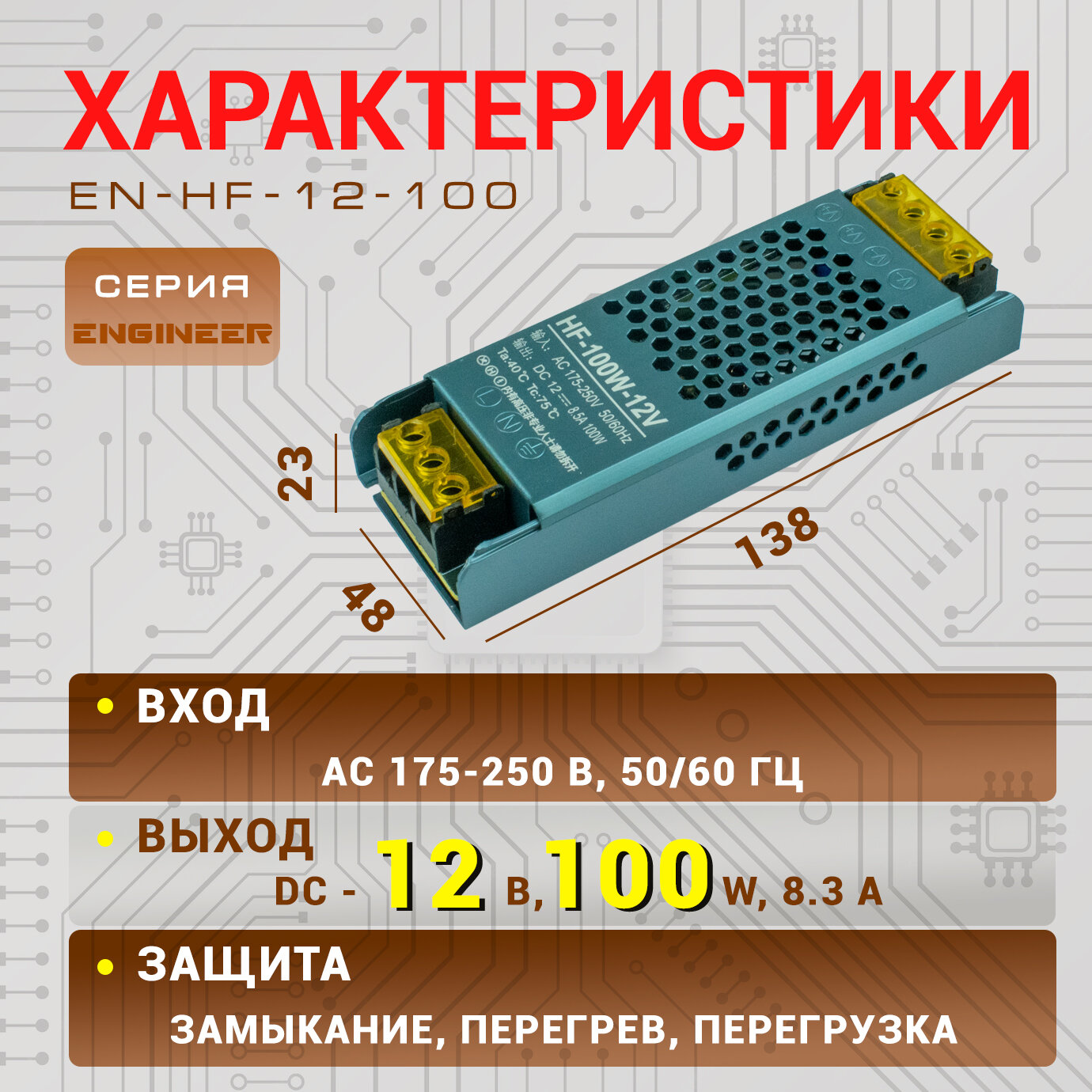 Блок питания 12V для светодиодной ленты Led-Book Engineer 100W информация: