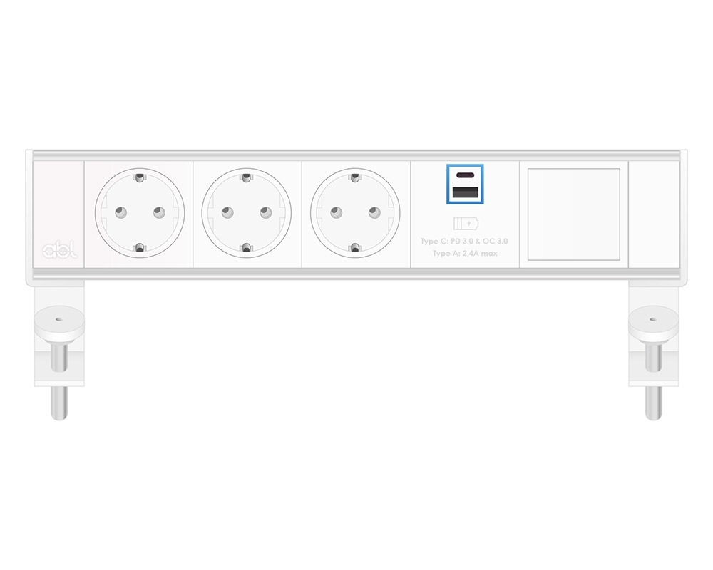 ABL 2A210304- Настольная розеточная станция серии Flexi с 3 розетками, 1xUSB-A, 1xUSB-C и 1 слотом для IMP, белая с серебристым информация: