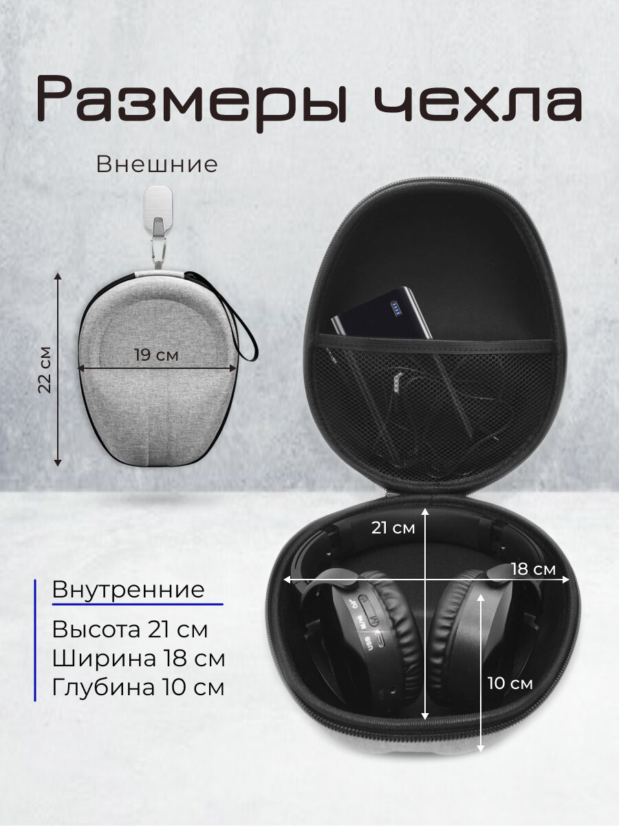 Чехол футляр сумка для накладных больших беспроводных наушников / серый информация:
