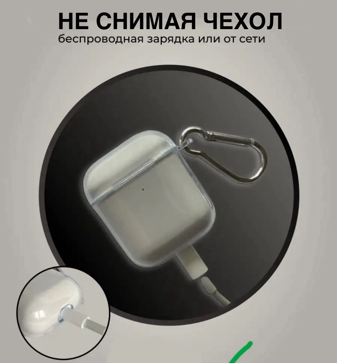 Силиконовый чехол для наушников AirPods 1/2 прозрачный с карабинам информация: