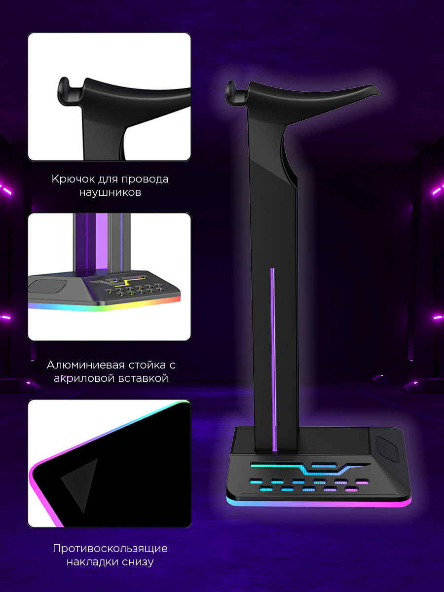 Подставка для наушников и гарнитуры D9 с подсветкой и хабом 1 390 ₽