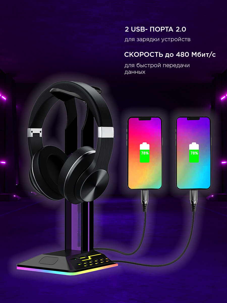 Подставка для наушников и гарнитуры Q7 с подсветкой и USB 1 150 ₽