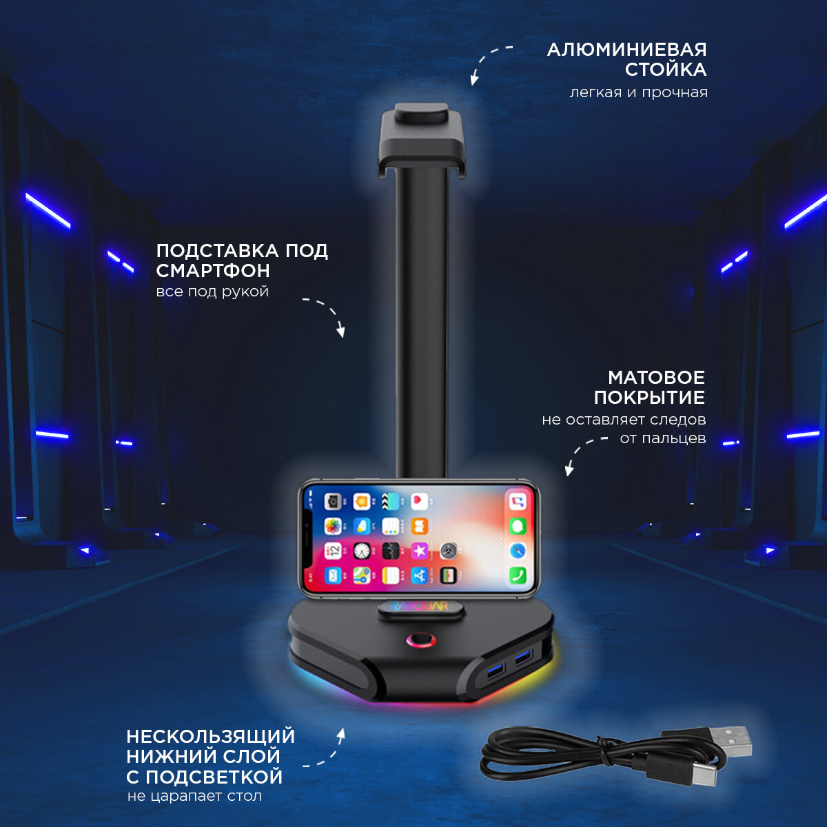 Подставка для наушников и гарнитуры D9 с подсветкой и хабом 1 390 ₽
