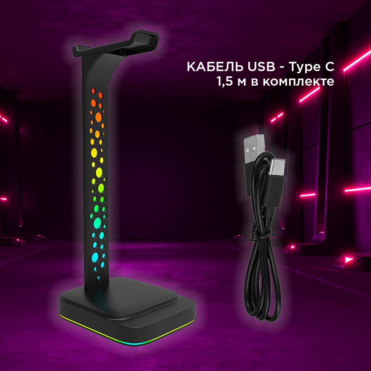 | Комплектация | Держатель для наушников и гарнитуры в разборе - 1 шт Кабель USB - Type C 1,5 м - 1 шт |