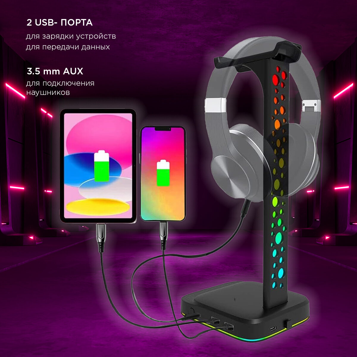 Подставка для наушников и гарнитуры G2 с подсветкой информация: